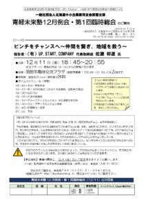 同友会函館支部の青年部「青経未来塾」より12月例会のご案内がありました。 テーマ:「ピンチをチャンスへ~仲間をつなぎ、地域を救う~」 報告者:(有)UP.START.COMPANY 代表取締役 佐藤将道氏 日時:12月1 […]